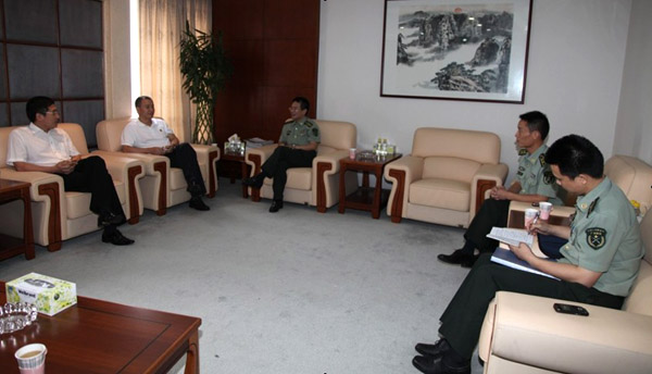 2011年5月24日上午,深圳市羅湖區(qū)人民武裝部政委劉曉春上校、副部長(zhǎng)劉志鵬中校等一行四人蒞臨我司,調(diào)研集團(tuán)民兵團(tuán)建設(shè)和指導(dǎo)集團(tuán)武裝部工作。集團(tuán)總經(jīng)理施長(zhǎng)躍、辦公室主任丁輝、副主任陳忠煉、副主任劉軍熱情接待了劉政委一行。施長(zhǎng)躍總經(jīng)理首先介紹了集團(tuán)的基本情況,陳忠煉副主任匯報(bào)了集團(tuán)民兵團(tuán)建設(shè)和集團(tuán)武裝部工作情況,劉政委認(rèn)真聽取了介紹和匯報(bào),對(duì)特發(fā)集團(tuán)人武建設(shè)工作給予了充分肯定和贊賞。